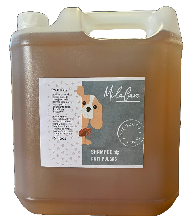 Shampoo antipulgas para perros con repelente natural de insectos.